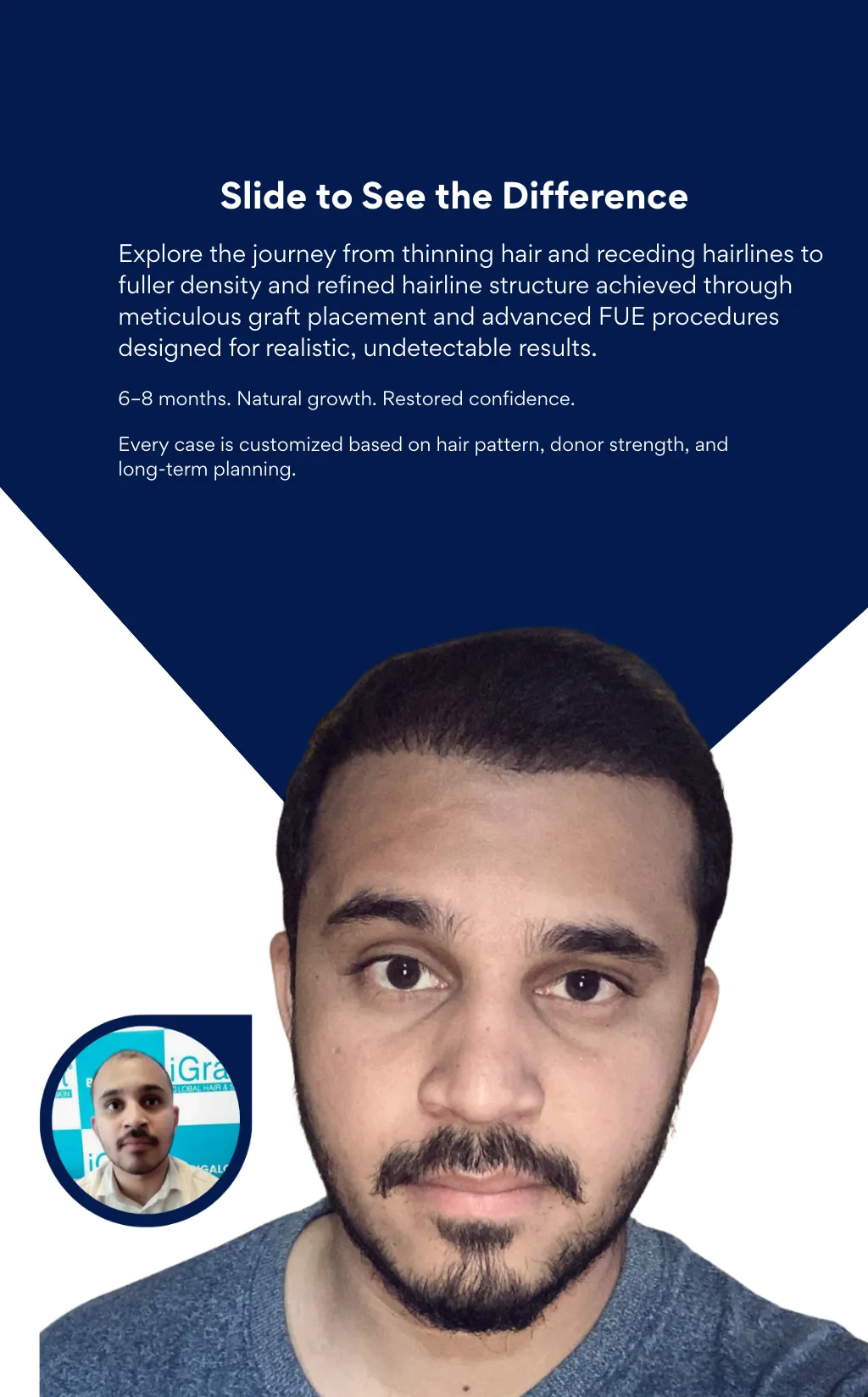 iGraft offers advanced hair transplant procedures in Pune, Hyderabad, Vijayawada, and Bangalore using internationally accepted techniques. Our infrastructure, skilled team, and patient-first approach ensure reliable and permanent hair restoration solutions.