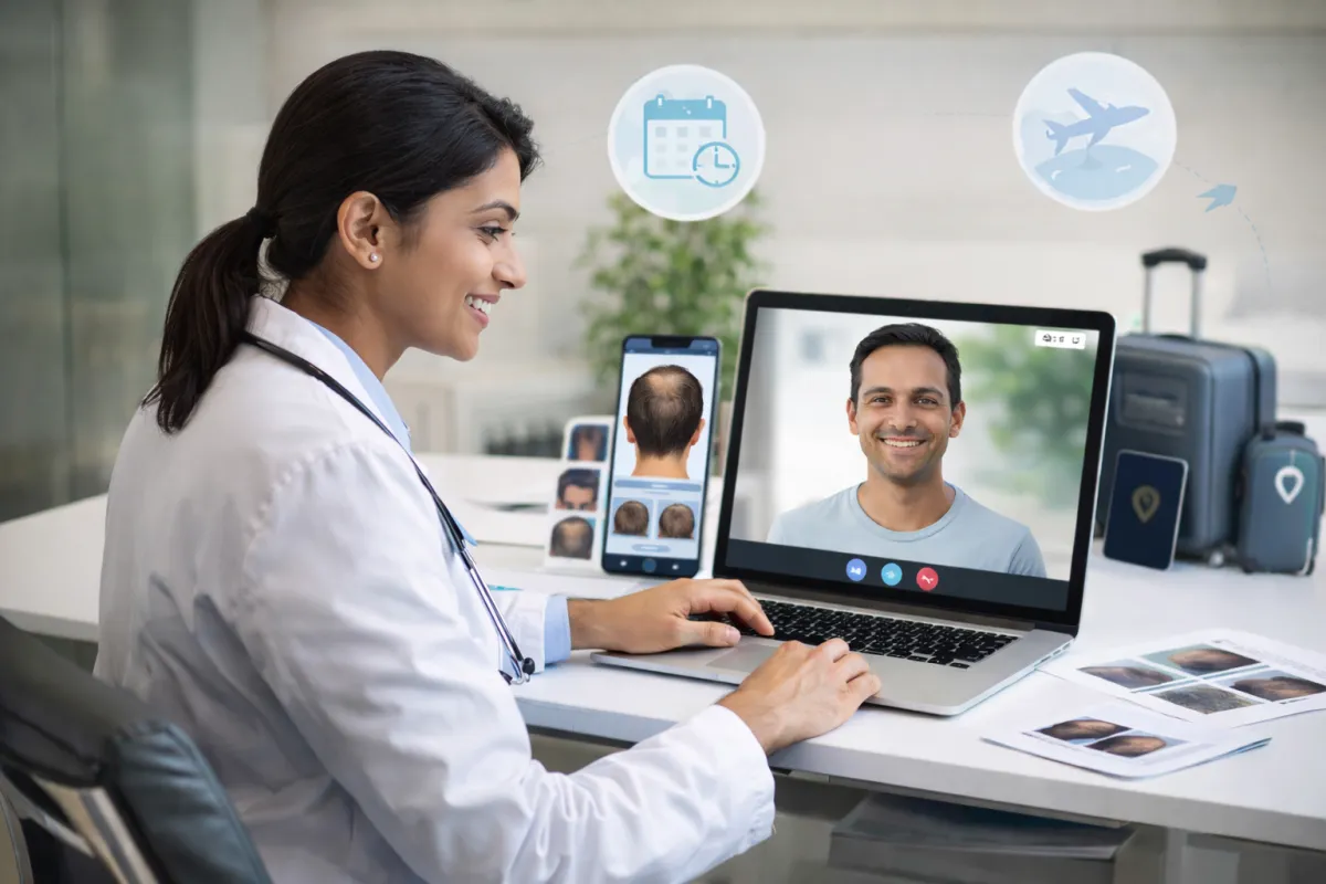 Connect with our expert hair transplant specialists from anywhere in the world. Get professional guidance, graft estimation, and personalized treatment planning all through a secure video consultation.